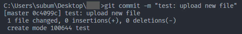 필자는 "test: upload new file"이라는 내용으로 커밋할 예정이다.