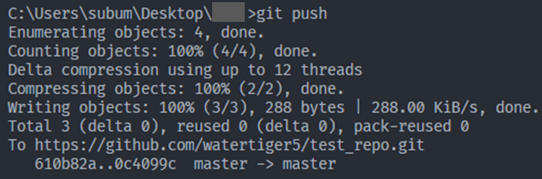 "git push"를 기입하여 원격저장소에 파일과 커밋내용을 업로드해주면 끝난다.