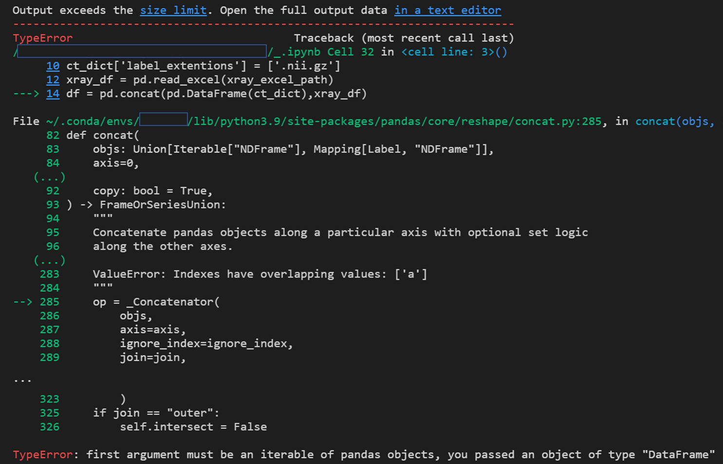 마지막 줄에 TypeError가 발생했다. (df = pd.concat(pd.DataFrame(ct_dict),xray_df))