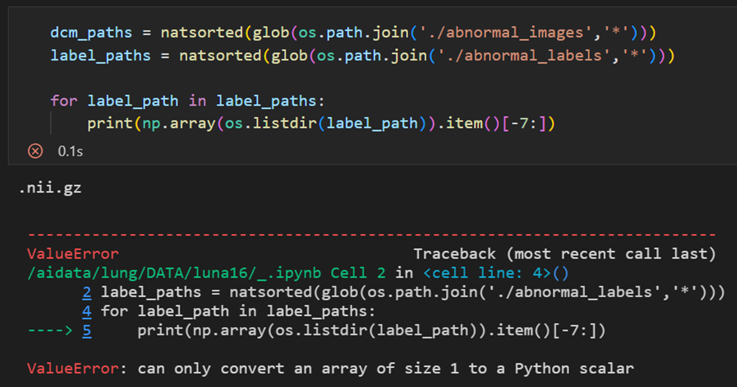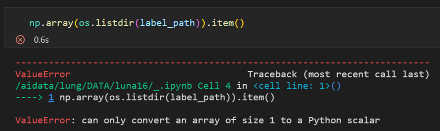 위 에러는 numpy 내에 하나의 스칼라 값이 아니라 여러 개의 값을 갖고 있을 때 안에 인자를 가져오려고 .item()을 사용하다가 발생한 오류이다.